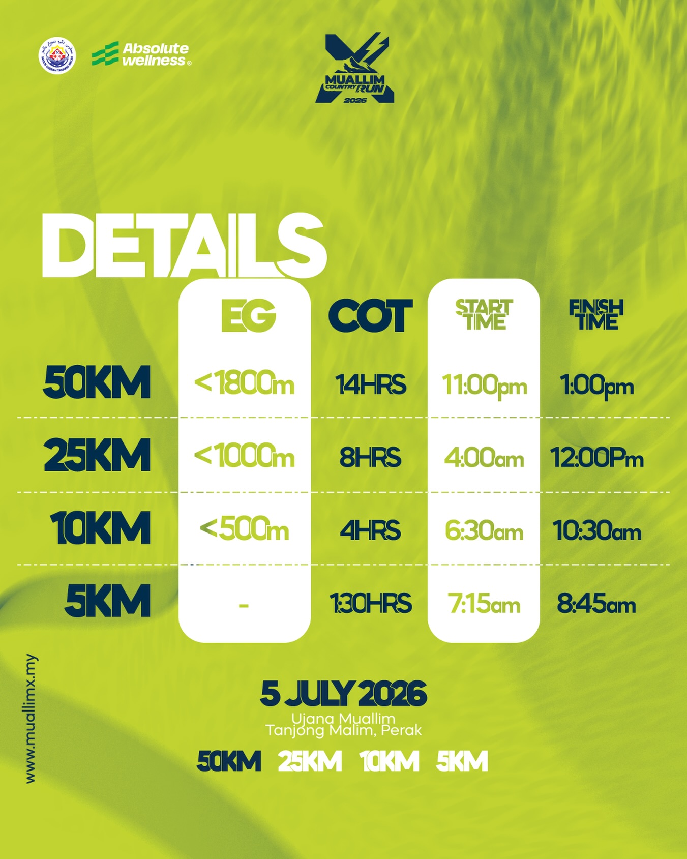 Event description and detailsEntering its 6th edition, Muallim Cross Country 2026 continues to celebrate the unique charm of Muallim—a district in Perak renowned for its rich natural landscapes and authentic local culture.