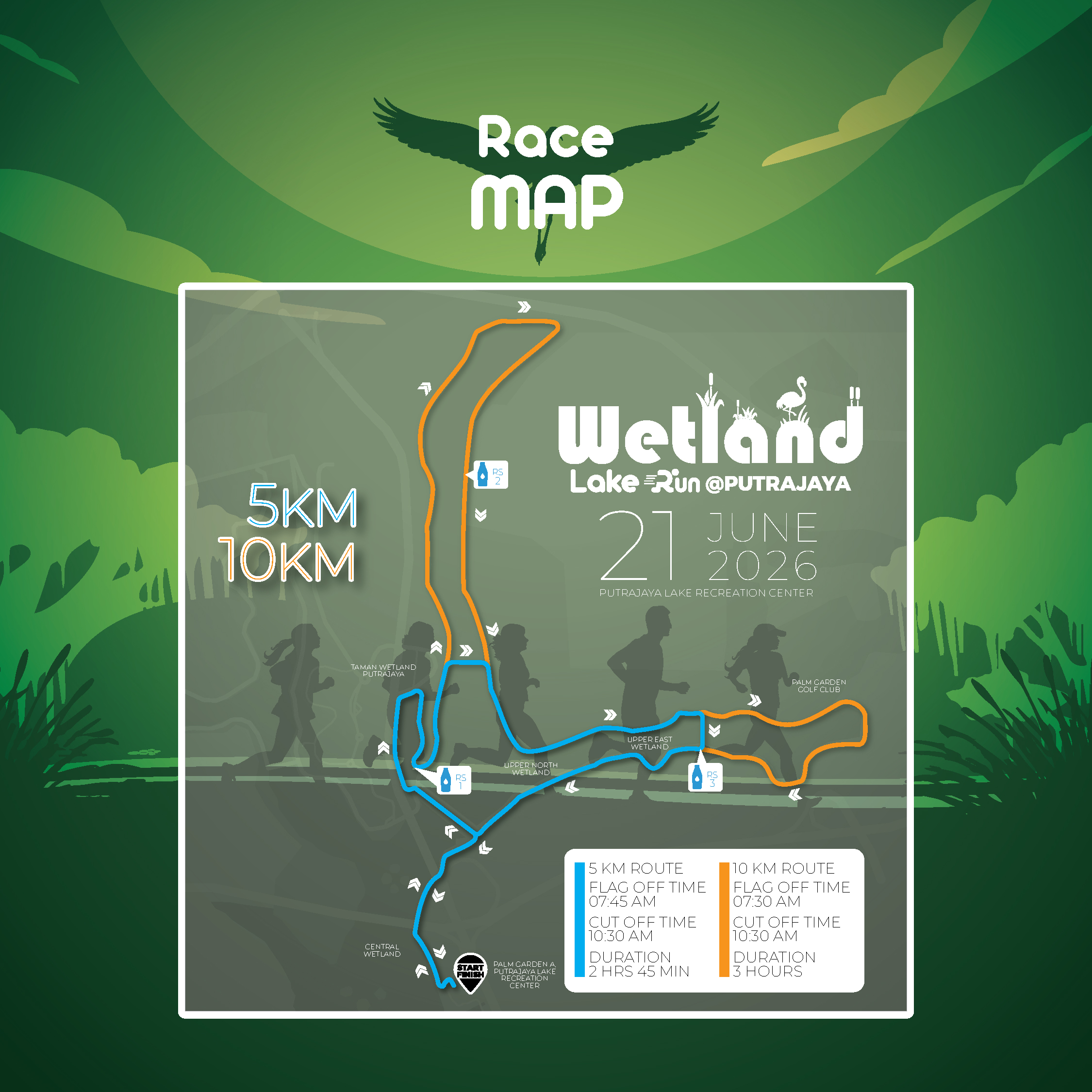 This exciting event features two distance categories — 10KM and 5KM — suitable for both seasoned runners and beginners looking to challenge themselves in a vibrant, community-driven atmosphere. Participants will enjoy a refreshing route through lush wetlands, well-maintained pathways, and the beautiful landscape that Putrajaya is known for.